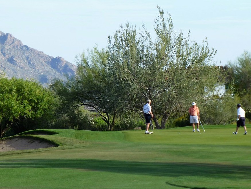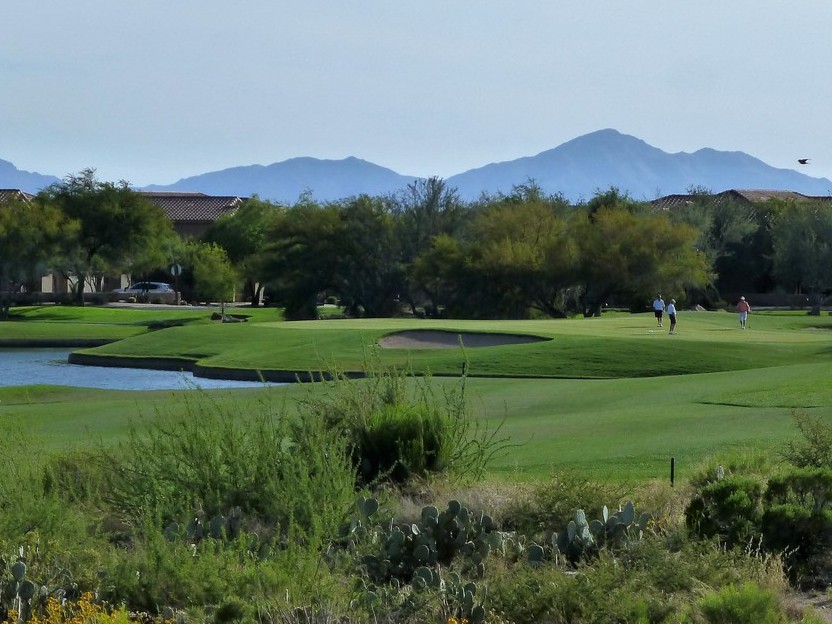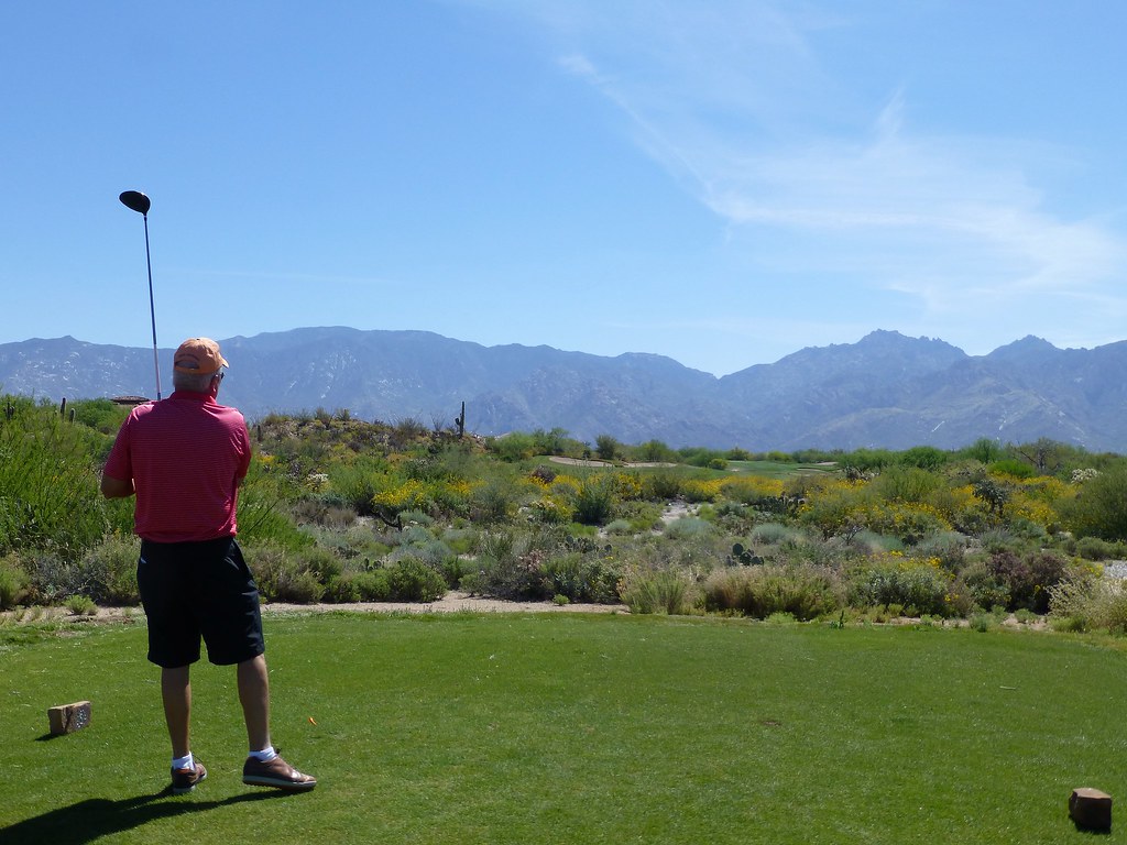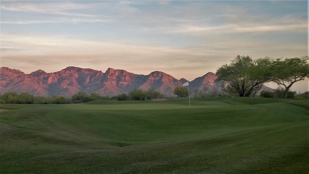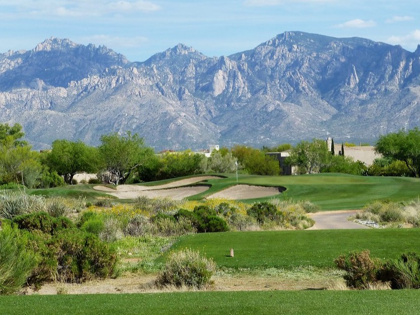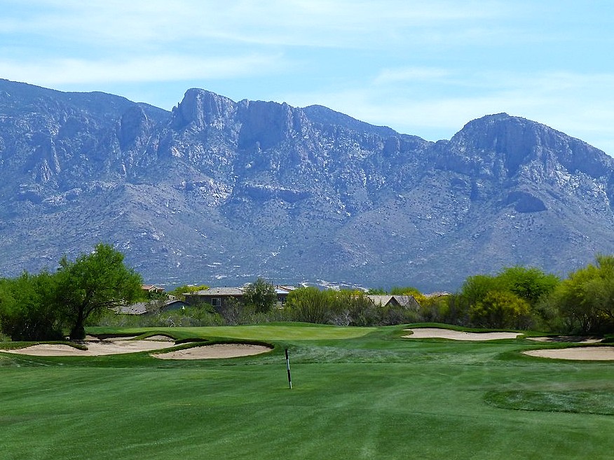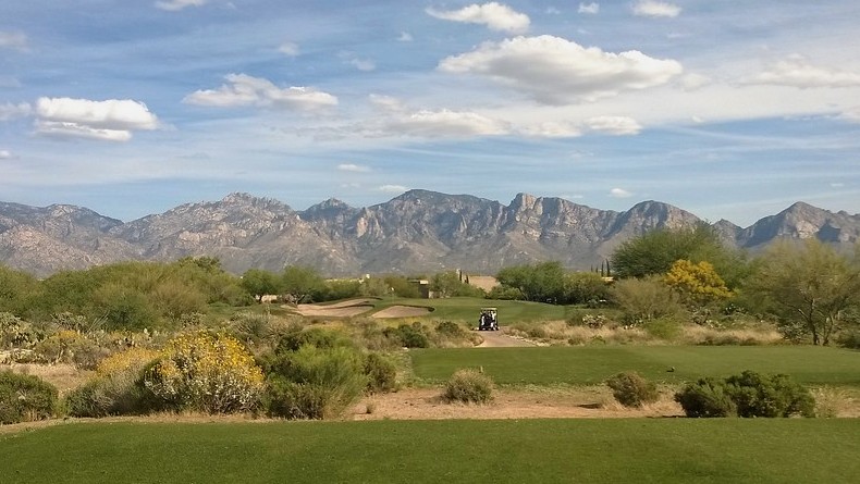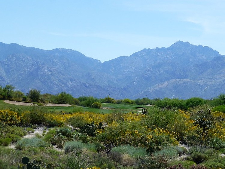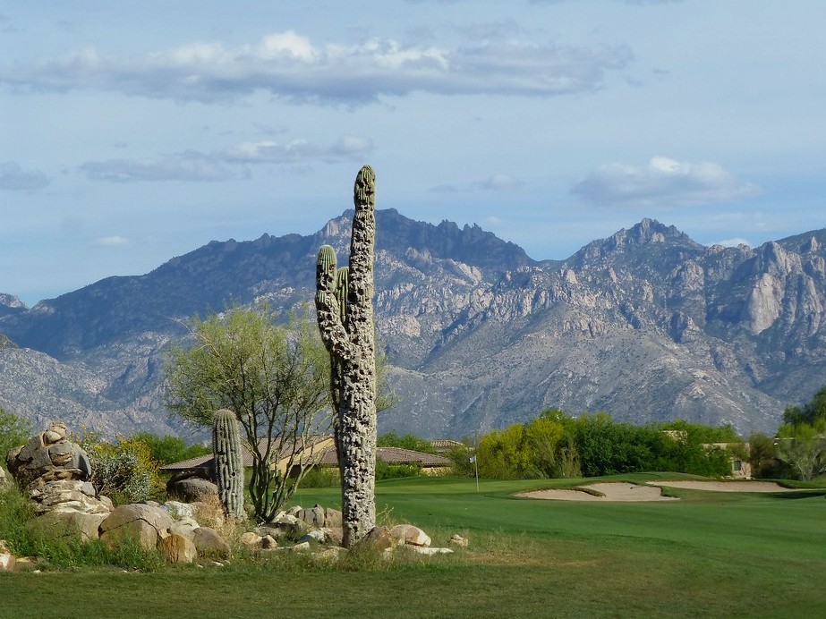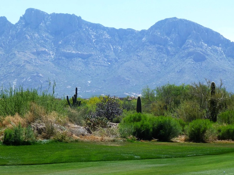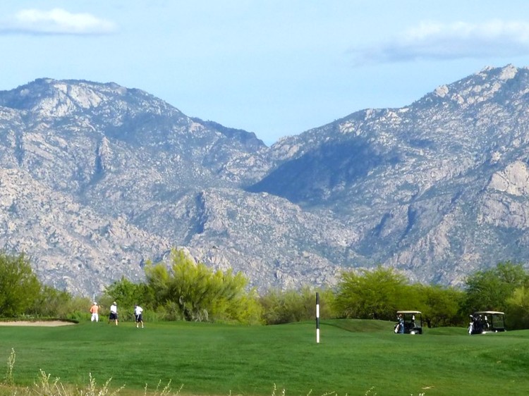Our condos are in the resort complex overlooking the Golf Club at Vistoso. The track runs through a valley between the Tortolita & Santa Catalina mountain ranges. Great views, saguaro cacti, and desert flora.
