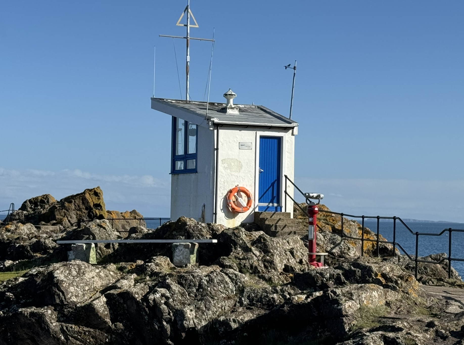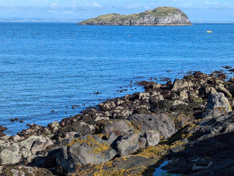 Too early to check in at our hotel, “No. 12”, we did a town walk-a-bout. North Berwick is a seaside town and an interesting harbor. Trusting in Mr. Elskin’s judgement, we took a short (Ha!) walk up to locate the town’s lone laundry. Beautiful views of the town, West Bay, and Bass Rock.